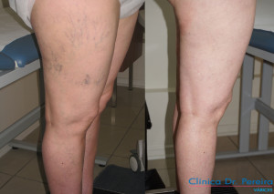 Cirugía Láser endovenoso más Flebectomía Antes, a los 7 días y 2 meses post-cirugía